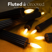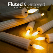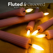 • DISTINCTIVE FLUTED DESIGN: 10" tall grooved LED pillar candle with elegant ribbed texture, evoking the charm of classic carved wax columns. This sculpted flameless light adds a touch of sophistication to any setting without fire risks